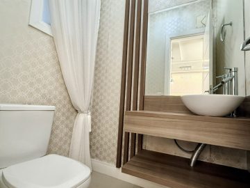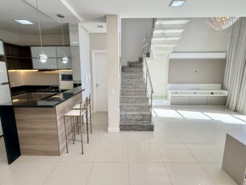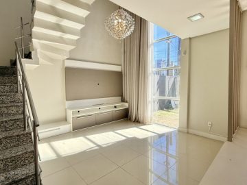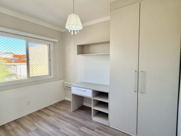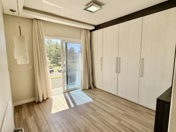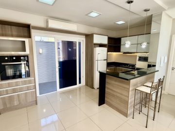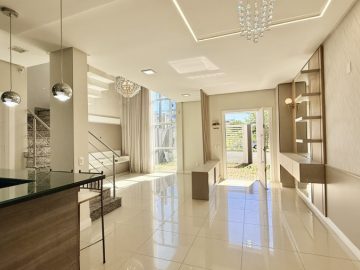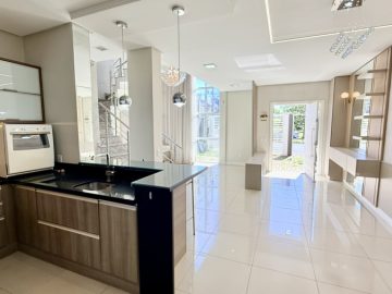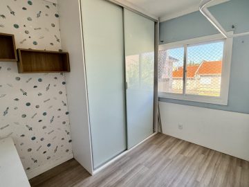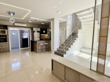 Sobrado semimobiliado no Bela Vista em Canoas; São 113,70m² com 03(três) dormitórios sendo 01(uma) suíte com sacada; No andar térreo, ambientes integrados com sala de estar e jantar, cozinha e lavabo, pé direto duplo com lustre; 02(duas) vagas de garagem; Pátio com churrasqueira; Piso porcelanato no térreo e laminado no andar superior; Permanecem todos os móveis panejados e demais itens como nas fotos. Localizado em área nobre, tem fácil acesso a Av. Santos Ferreira, comércios em geral, bancos.